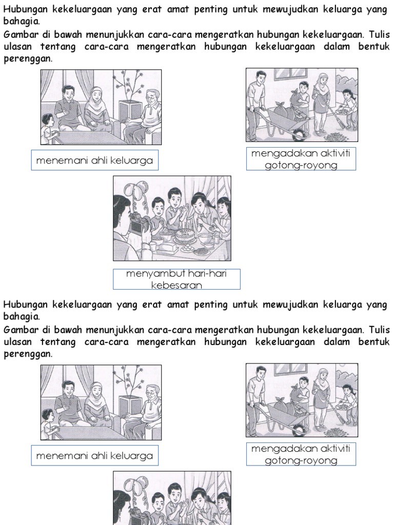 Mengeratkan Hubungan Kekeluargaan Worksheet. Aktiviti kekeluargaan vital kerana dapat mewujudkan suasana yang bahagia sesama ahli keluarga dan juga mengeratkan ikatan silaturahim bak isi. Tambahan pula remaja haruslah melengkapkan diri dengan lunas keluhuran moral supaya hubungan kekeluargaan yang erat dapat dijalin.