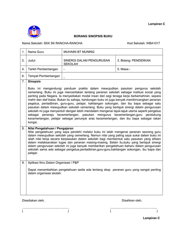 Sinopsis Sekolah4 Doc Lampiran C Borang Sinopsis Buku Nama Sekolah Smk Taman Kosas Ampang Kod Sekolah Bea4609 1 Nama Guru 2 Judul Indahnya Hidup Course Hero